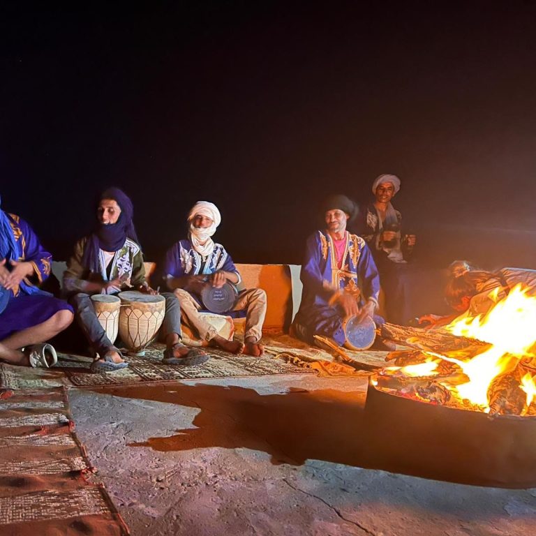 - Gentle back-opening yoga after the drive; Gnawa music in Khamlia village.